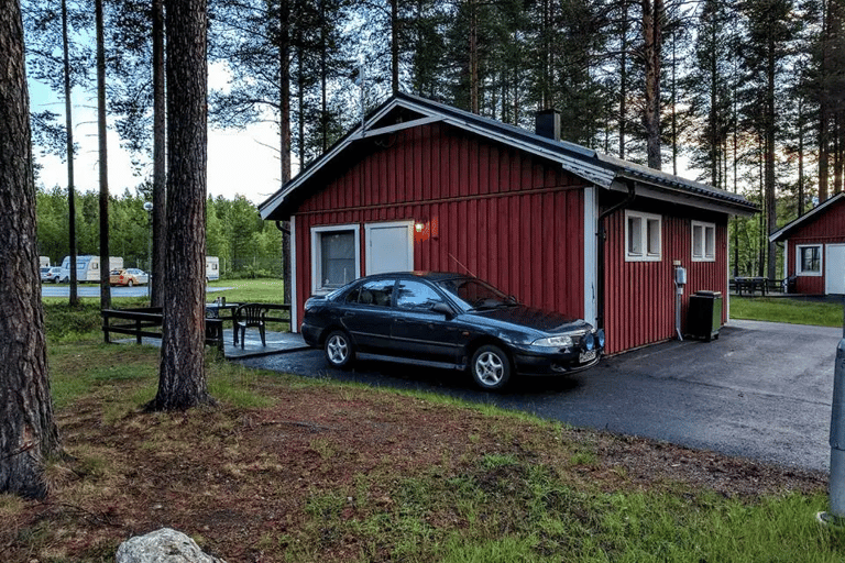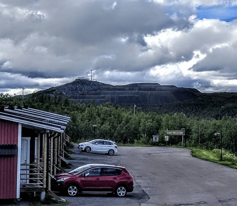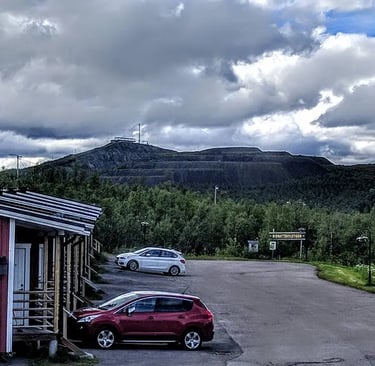 Her har vi ankommet Kiruna på veien hjem. Fin camping fant vi også. Deler av gruveområdet ser man i bakgrunnen.
