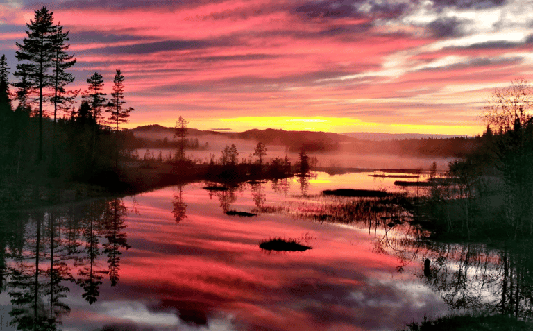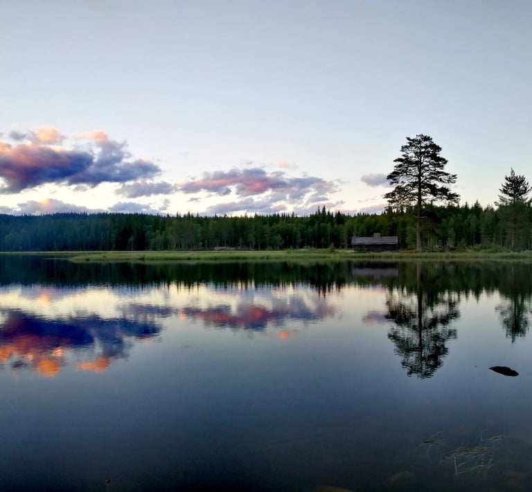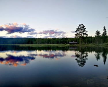 Dette bildet er tatt ikke langt fra Søndagsmyrdammen. Høljesjøen ligger rett ved og kan være like idyllisk